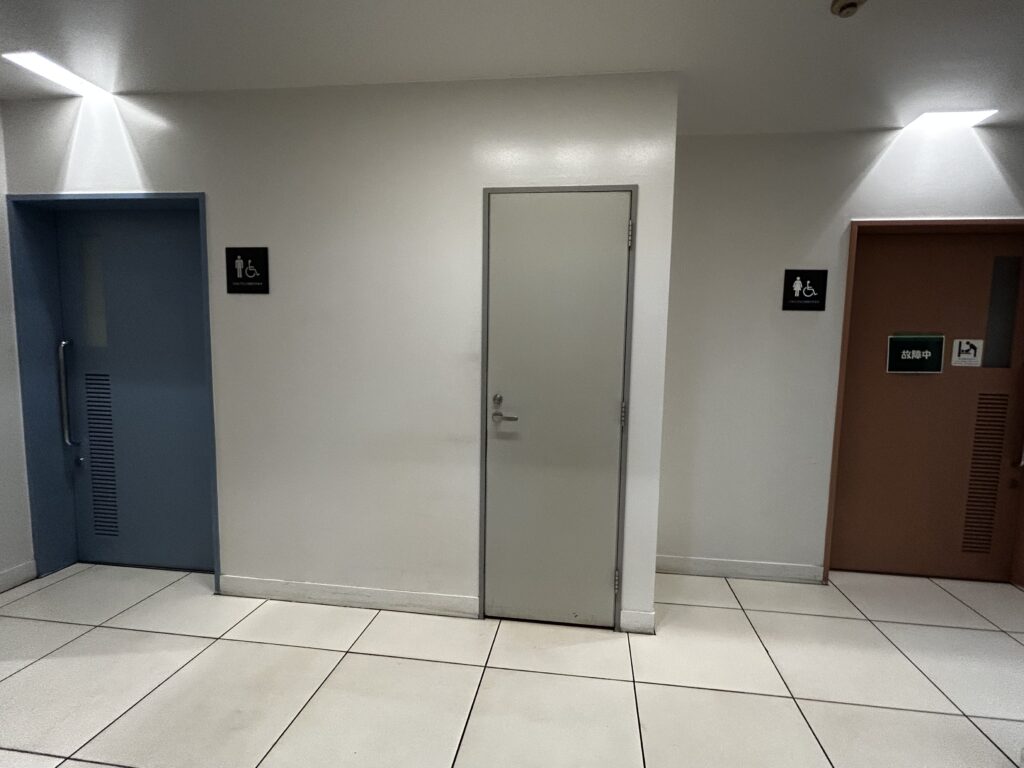 A棟のバリアフリートイレは男女に分かれています。異性介助だと少し困るパターンです。また女性側はずっと故障中・・・中の様子を確認したいのですが、確認できていません。