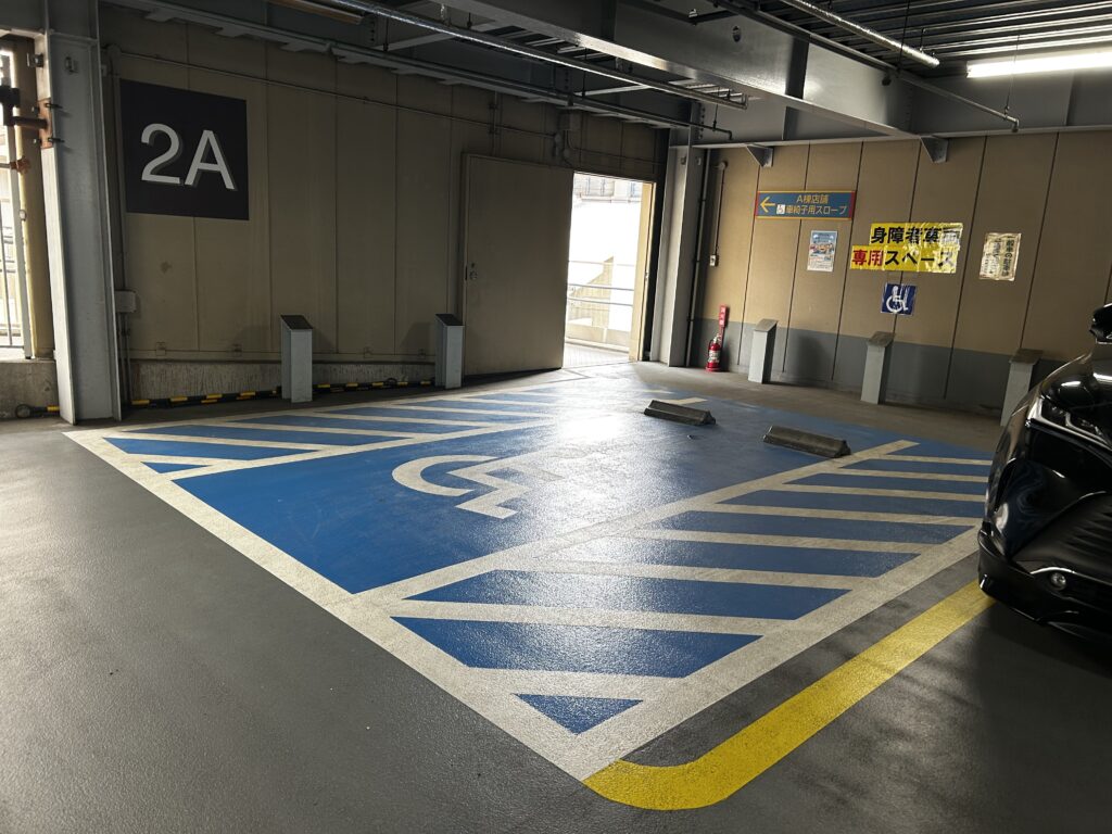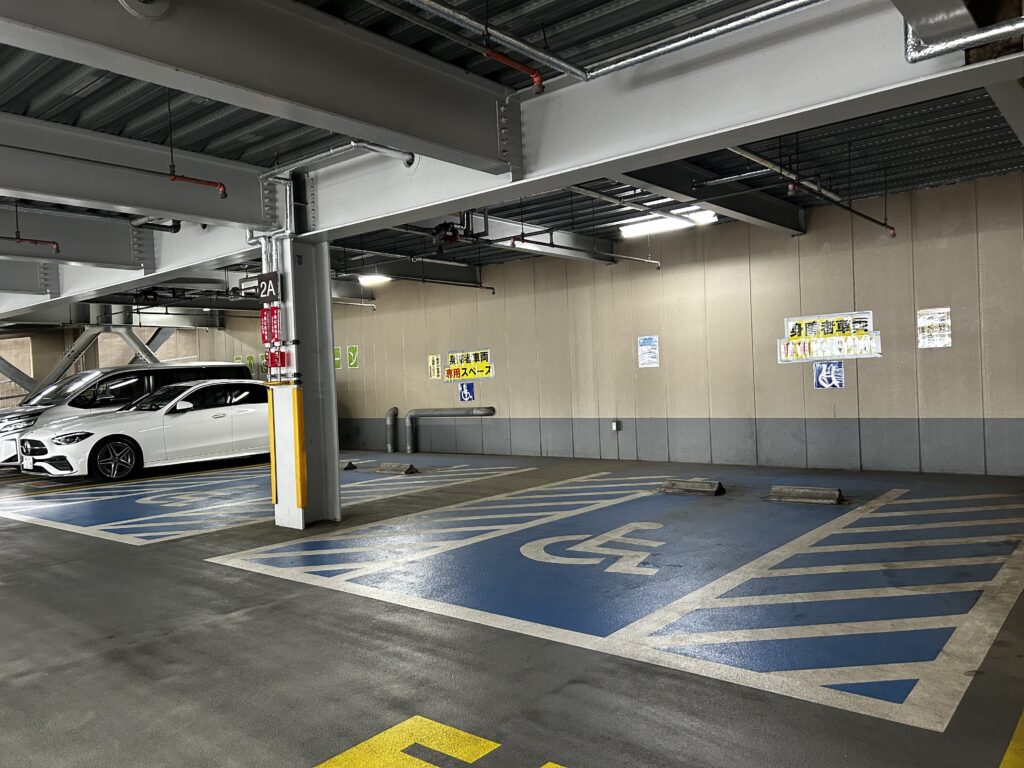 2Aフロアに「身障者車両専用スペース」が3台分あります。駐車場から商業施設があるA棟まで直接渡れる連絡通路がすぐそばにあります。