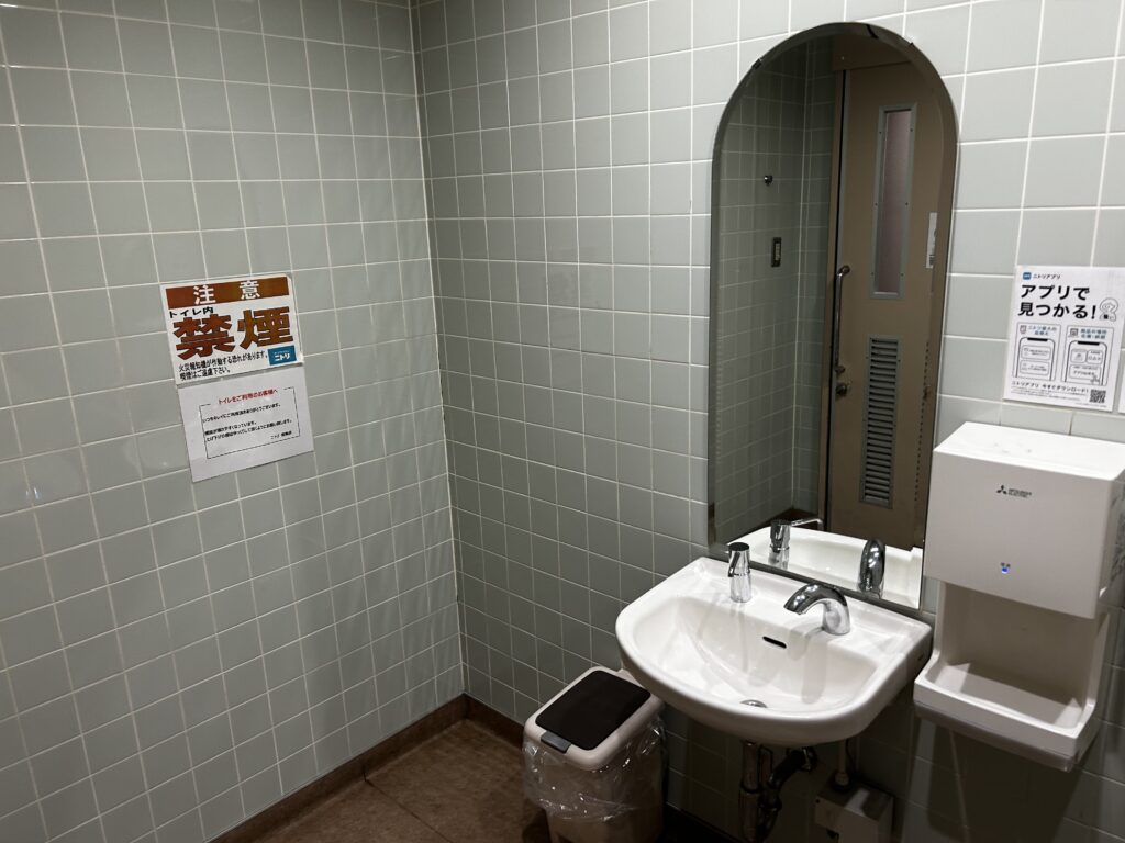 1階に一つ多目的仕様のトイレがあります。手洗いがセンサー式の蛇口だったり、エアタオルがあったりするのは、片側に不自由がある時にとても助かります。(紙で拭くとなると、どうしても両手を使いたくなるので)清掃も行き届いていて、キレイでした。