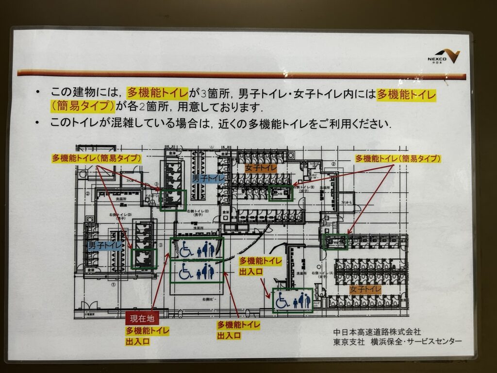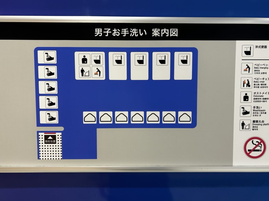 広いトイレの中に下記案内図があり、どの位置が多機能トイレになっているかがわかります。