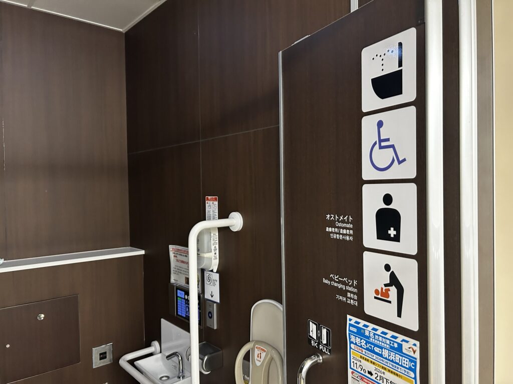 🚻トイレ:全部で5つの「バリアフリートイレ」があるだけでなく、男女それぞれのトイレにも多機能トイレがあります。少し情報量が多いですが、非常に詳しい掲示も貼られていました。