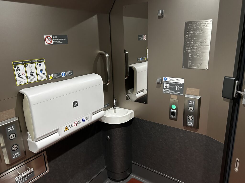 🚻トイレ:E8系はトイレや多目的室も非常に充実しています。