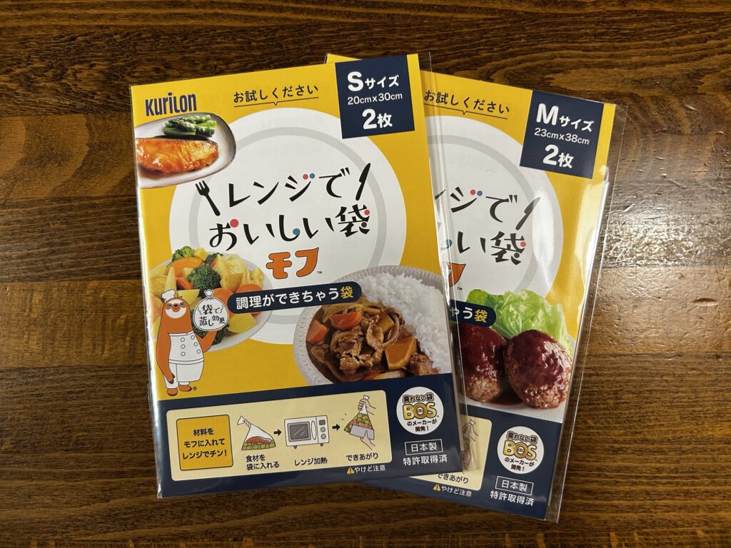 この製品にもまた驚かされました。材料をモフに入れてレンジでチン!するだけで、簡単に調理が完成してしまうというもので、その便利さにも驚かされました。一般的なポリ袋よりも強度・耐熱性・防臭性が高く、加熱にも冷凍にも対応できる特許素材を使っているそうです。