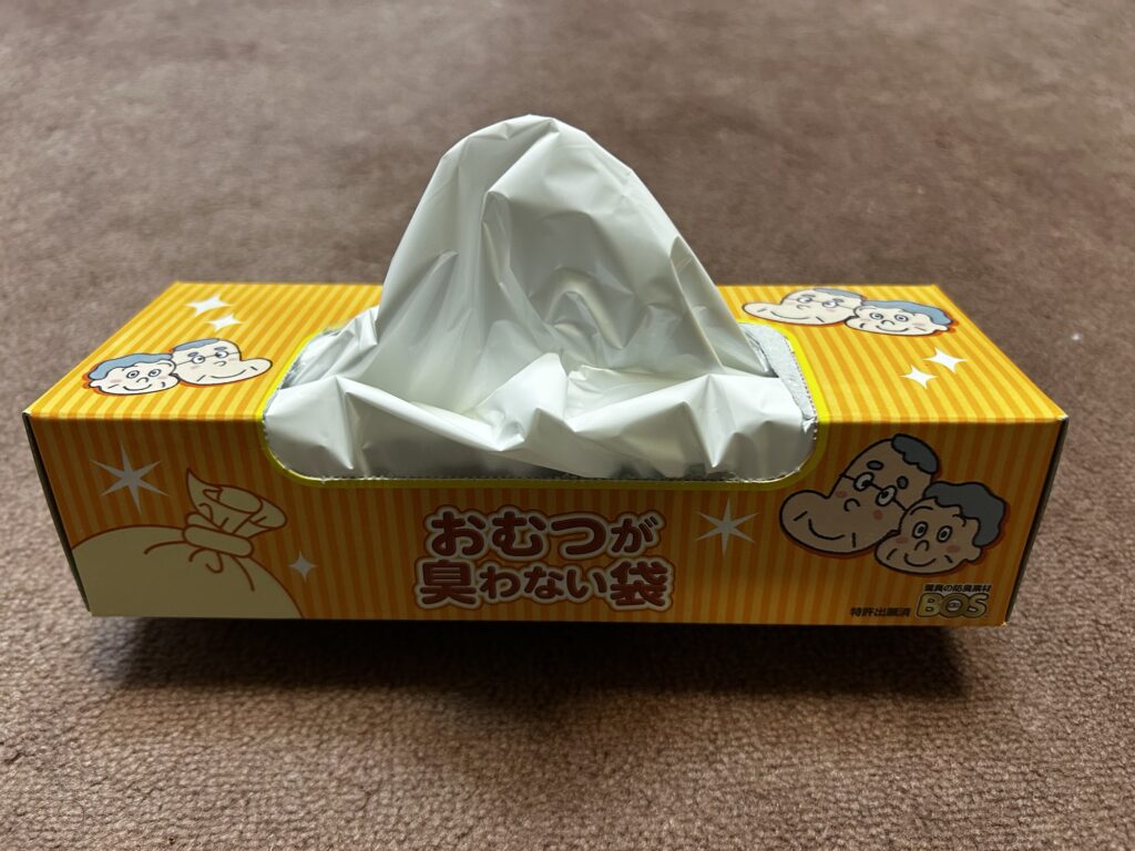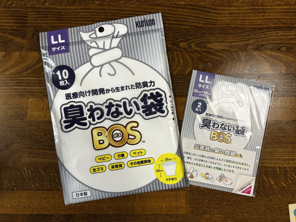 介護に関わっている方でしたら、もしかしたら下の写真のパッケージをご覧になったことがあるかもしれません。クリロン化成株式会社という様々なフィルムを作っている会社が開発した「驚異の防臭袋BOS」です。