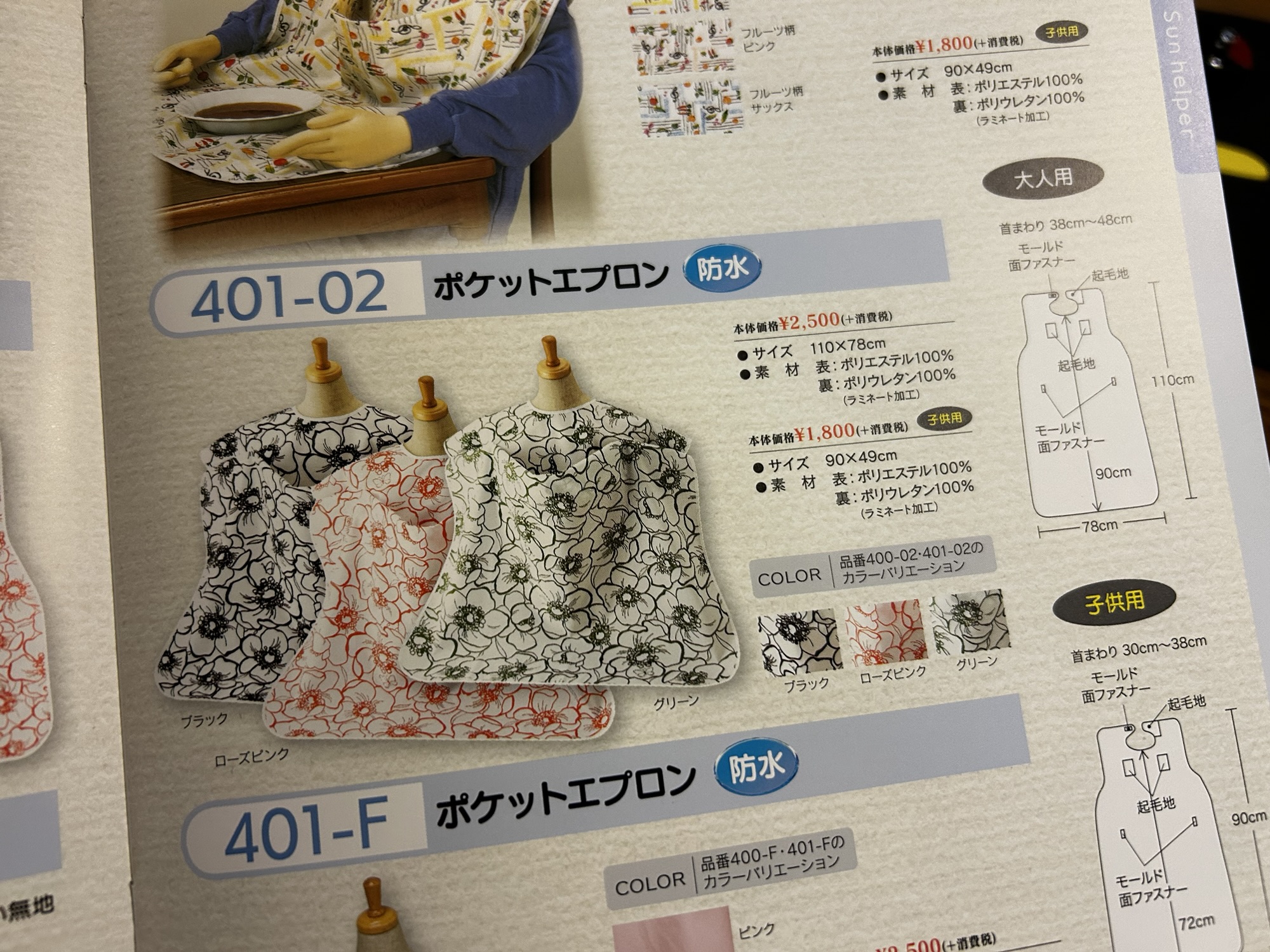 国際福祉機器展で見つけたおすすめしたい商品シリーズ。今回はサンヘルパー(松本ナース産業株式会社)さんのポケットエプロン(防水)をご紹介します。