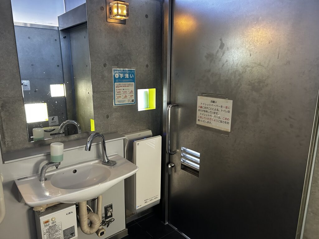 武田信玄公銅像から見て右正面に公衆トイレがあります。最近新しくなったようで、とても綺麗で設備も充実しています。