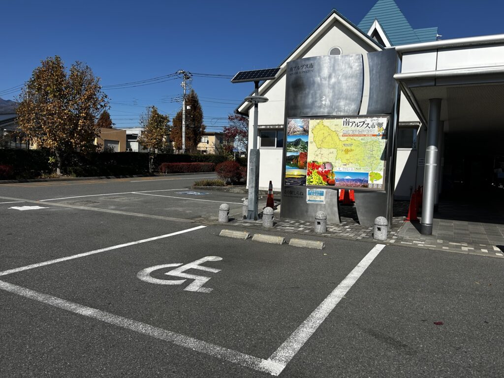 道路を挟んでトイレや観光案内所があるエリアと、JA南アルプス市が運営する農産物直売所のエリアに分かれています。