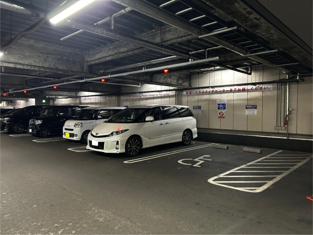 他のバリアフリーサイトではP1に7台、P2に10台という記載があったのですが、今回(2026年1月)確認したところ次のようになりました。もしかしたら途中で運用が変わったのかもしれません。(または管理人が見落としていることもあり得ます。数えた方がいらっしゃいましたら、ぜひお知らせください!)